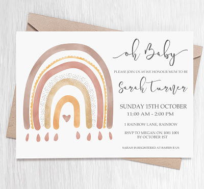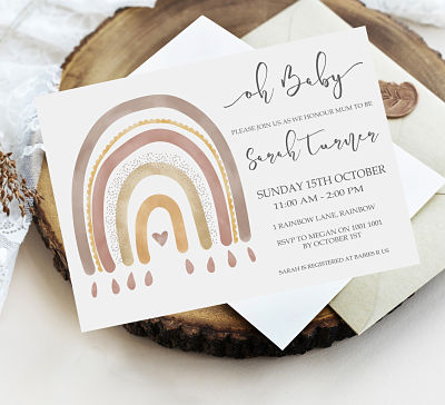 Our range of baby shower invitaions are all professionally printed onto a 300gsm high quality card stock. Each invitation is 10x15cm in size. They each come with a crisp white envelope.